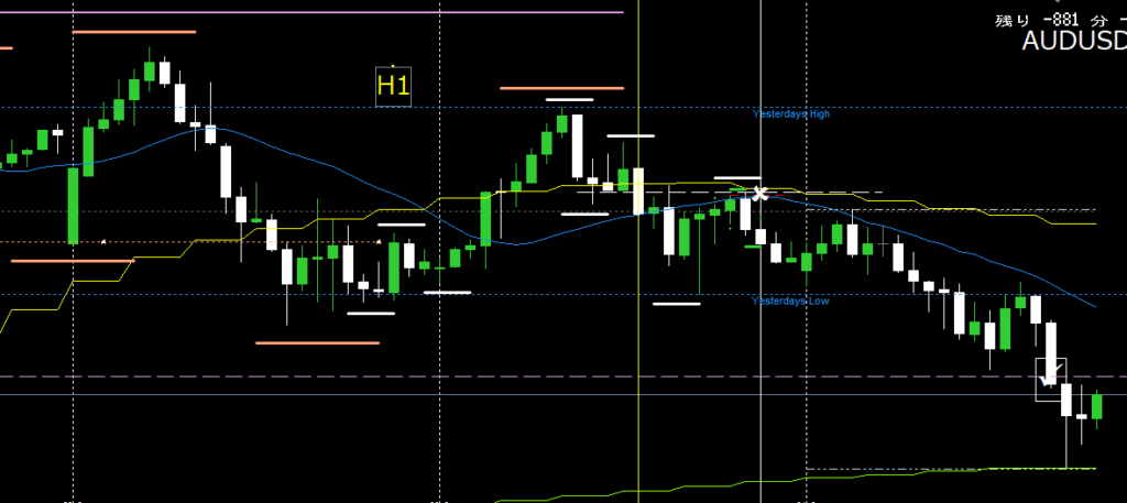 H1レジサポ反転でのエントリーなので、損切りはH1波の直近高値に設置。