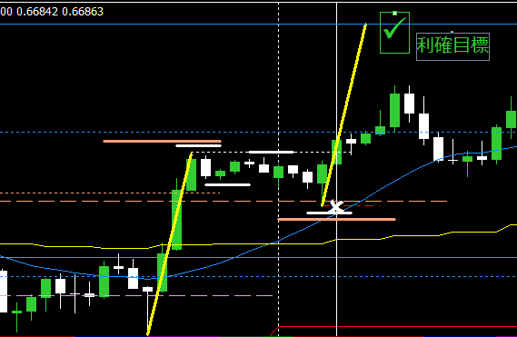 浅い押しから一気にダウ更新していくパターンは上昇の勢いが強いことが多いので、利確目標はN値に設定。