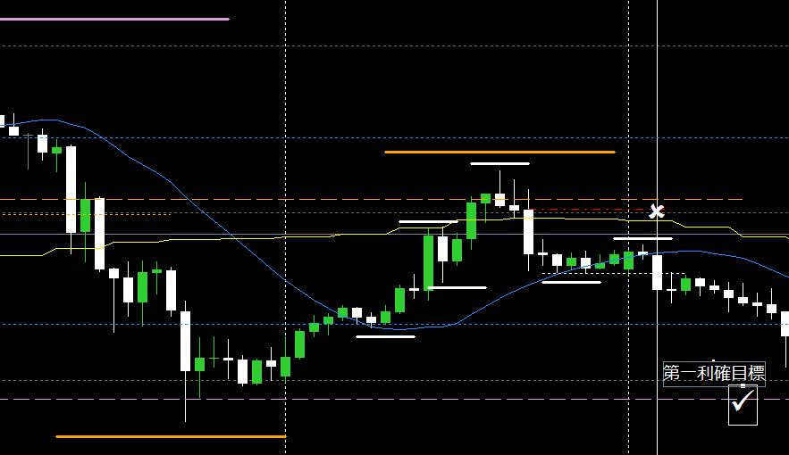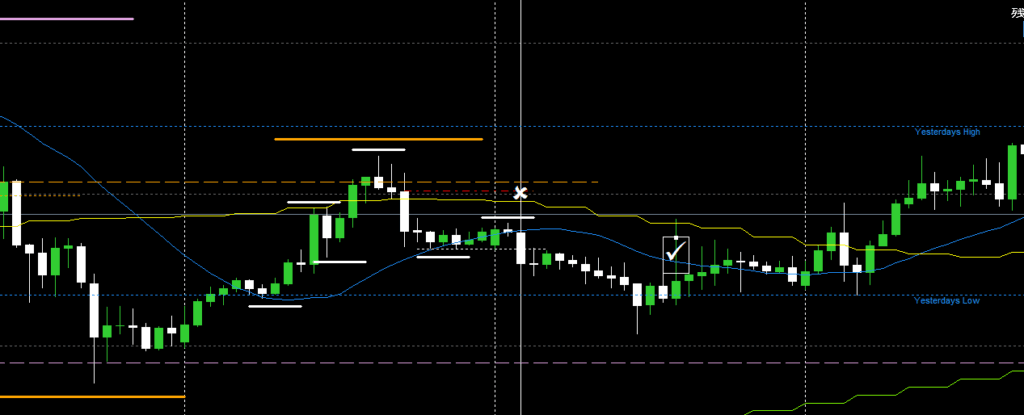 日足の向きとは反対方向へのトレードなので(日足MAが下にあるので)、大きな利幅は望めない。