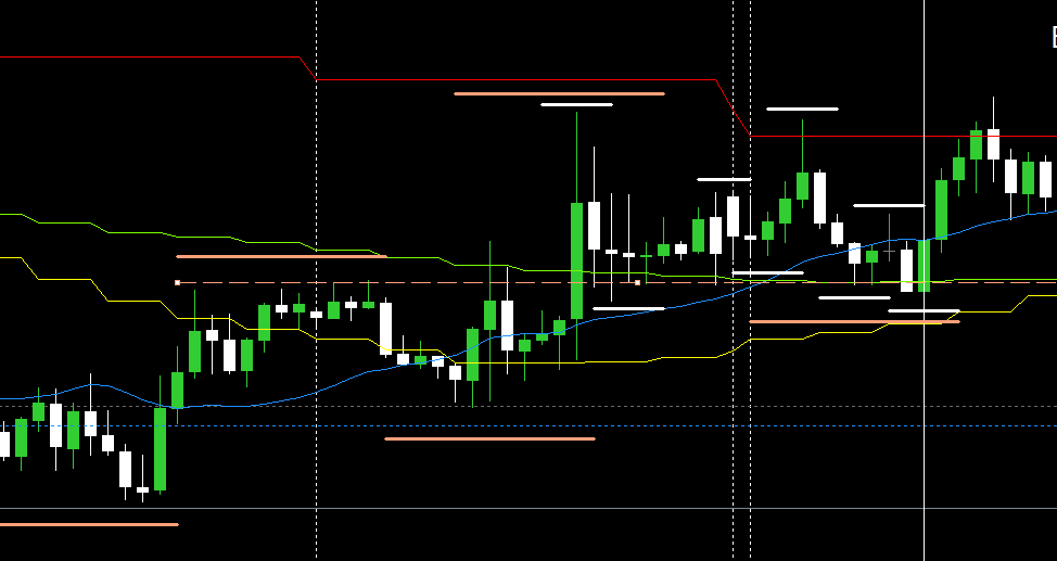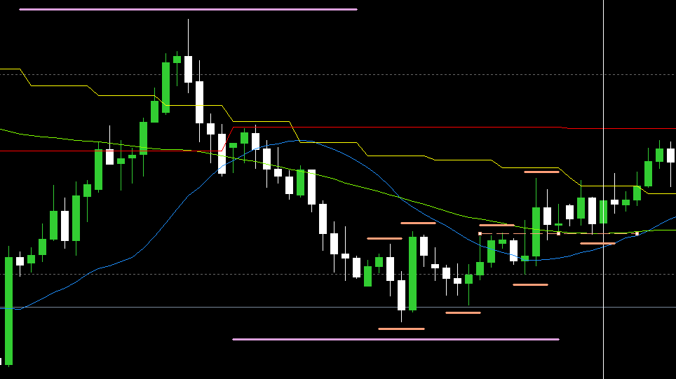4時間足MAと4時間足の80MAを上抜けしてきて、上にある日足MAとの間で、押し(レンジのような形での横ばい)を作ってきた