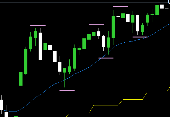 今回のエントリーはエントリー前に1時間の谷(安値)が二つできた形(WB)だったので、一つ目の谷内の二番目に低い位置にあるローソク足の安値に損切りを設置した。