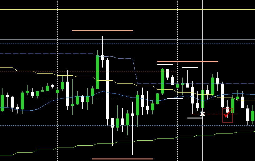 直後に白垂直線の所でH1ローソク足の包み足が確定した。